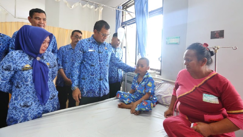INFOSULSEL.COM, MAKASSAR, — Penjabat Wali Kota Makassar, Iqbal Suhaeb menjenguk Suman anak berumur 10 tahun yang mengidap penyakit tumor di dadanya, di RSUD Daya, Kamis (19/12/19).