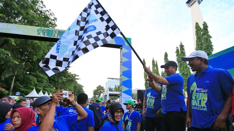 INFOSULSEL.COM, MAKASSAR, — Penjabat Wali Kota Makassar melepas ratusan peserta Jamsostek Fun Walk, di depan Monumen Mandala, Ahad (22/12/2019)