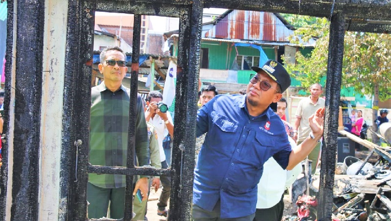 Penjabat Wali Kota Makassar Iqbal Suhaeb didampingi Camat Tallo Zainal Takko, Kepala Dinas Sosial Mukhtar Tahir dan Kepala BPBD Kota Makassar dr Rusli yang mengunjungi lokasi kebakaran menghimbau warga agar tetap waspada dan memperhatikan kabel – kabel yang ada di rumahnya.