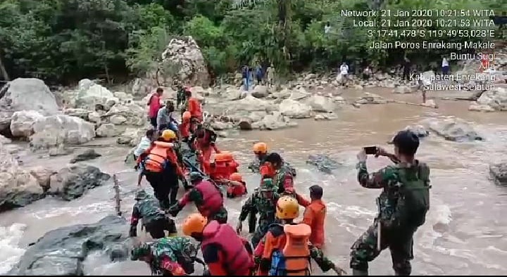 Adapun unsur yang terlibat saat proses pencarian dan evakuasi korban yakni BASARNAS, SAR UNM, SAR UNHAS, SAR Sawerigading, SAR Pramuka, BPBD Enrekang, TAGANA 5, TNI, POLRI, POL PP, ORARI, Masyarakat setempat.(ippang/riel)