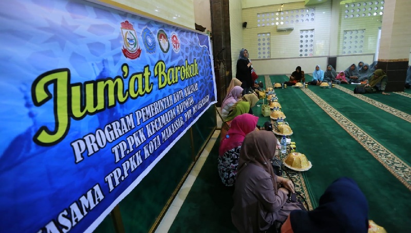 INFOSULSEL.COM, MAKASSAR — Ketua TP PKK Kota Makassar, Murni Djamaluddin Iqbal, Jumat Berkah, membagikan mukenah di beberapa masjid di kecamatan Rappocini.