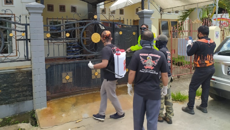 INFOSULSEL.COM, MAKASSAR — Dalam upaya pencegahan dan memutuskan mata rantai penularanan virus Corona atau Covid-19 di kota Makassar, Sulawesi Selatan, Badan Lingkungan Hidup MPW Pemuda Pancasila Sulawesi Selatan melakukan penyemprotan desinfektan di kompleks perumahan Bumi Sunu Permai, Jalan Al-Markaz, Kelurahan Lembo, Kecamatan Tallo, Selasa (31/3/2020).