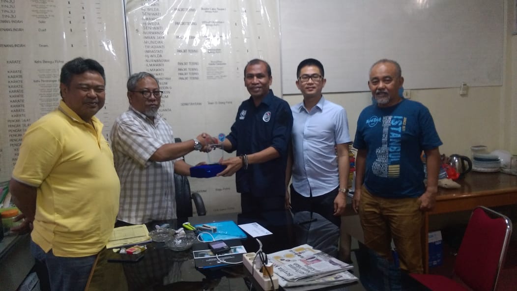 Didampingi sejumlah calon anggota pengurus, Irwan Ince menyerahkan laporan hasil Musdanya ke KONI Sulsel yang diterima Sekretaris Umum Addien, yang didampingi Ketua Bidang Organisasi M.Arfandy Idris dan anggota Bidang Pembinaan Prestasi Syamsuddin Umar,