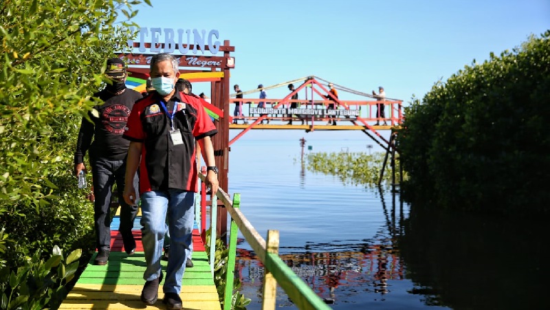 INFOSULSEL.COM, MAKASSAR – Penjabat Walikota Makassar Prof. Yusran Jusuf mengunjungi kawasan ekowisata atau ekominawisata tanaman bakau atau mangrove Lantebung di Kelurahan Bira, Kecamatan Tamalanrea, Makassar. Sabtu (30/5/2020).