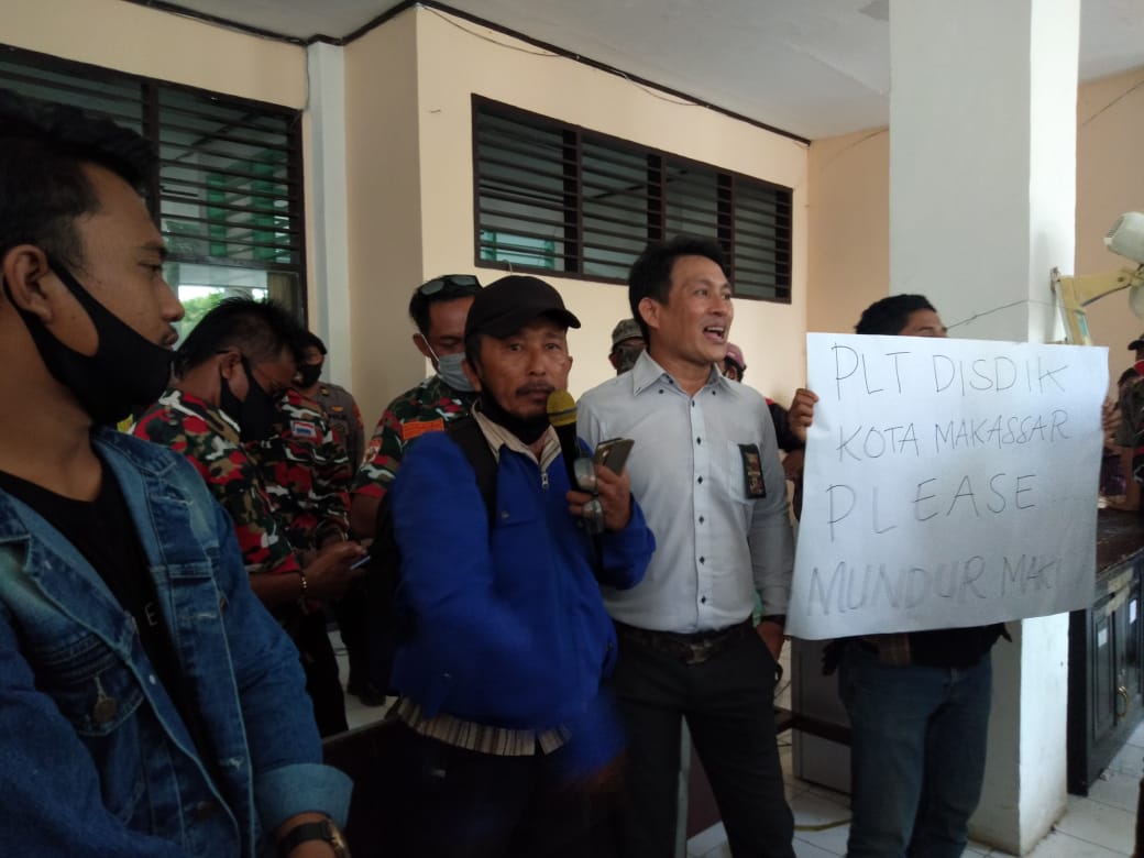INFOSULSEL.COM, MAKASSAR – Puluhan massa aksi yang tergabung dalam Aliansi Masyarakat Peduli Pendidikan (AMPP) Kota Makassar memadati Kantor Dinas Pendidikan Kota Makassar, Senin (6/7/2020).
