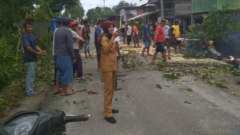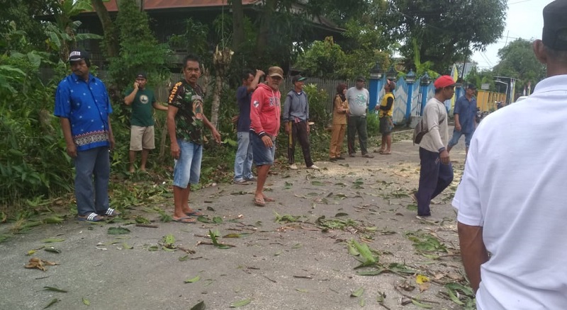 Saat pemangkasan tersebut Lurah Madeceng Andi Siti Nurjanna A. Renreng hadir menyaksikan warganya melakukan gotong royong.(FOTO -FOTO : RUSLAN)