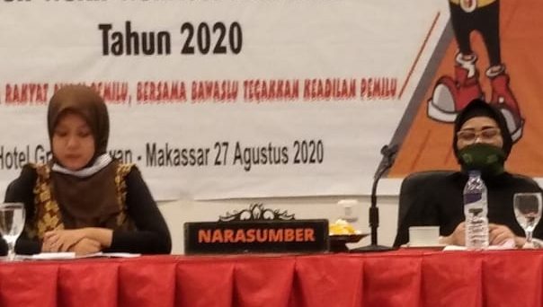 Untuk memaksimalkan keterlibatan perempuan dalam agenda pencegahan money politik di Kota Makassar jelang Pilkada Serentak 2020, Badan Pengawas Pemilu (Bawaslu) Kota Makassar menghadirkan Ketua I PW Muslimat NU Sulsel, Dr. Hj Nurjannah Abna, S.S, M.Pd, sebagai narasumber dalam kegiatan sosialisasi Pengawasan Pemilu di Hotel Grand Imawan, Jalan Boulevard, Makassar, Kamis (27/8/2020).