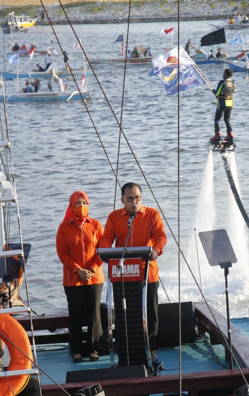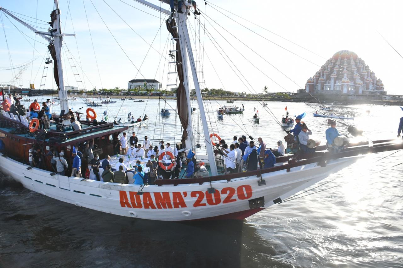 Di atas Kapal Pinisi yang berlayar, pasangan dengan tagline ADAMA menyampaikan gagasan dirinya maju dalam kontestasi Pilkada 2020.