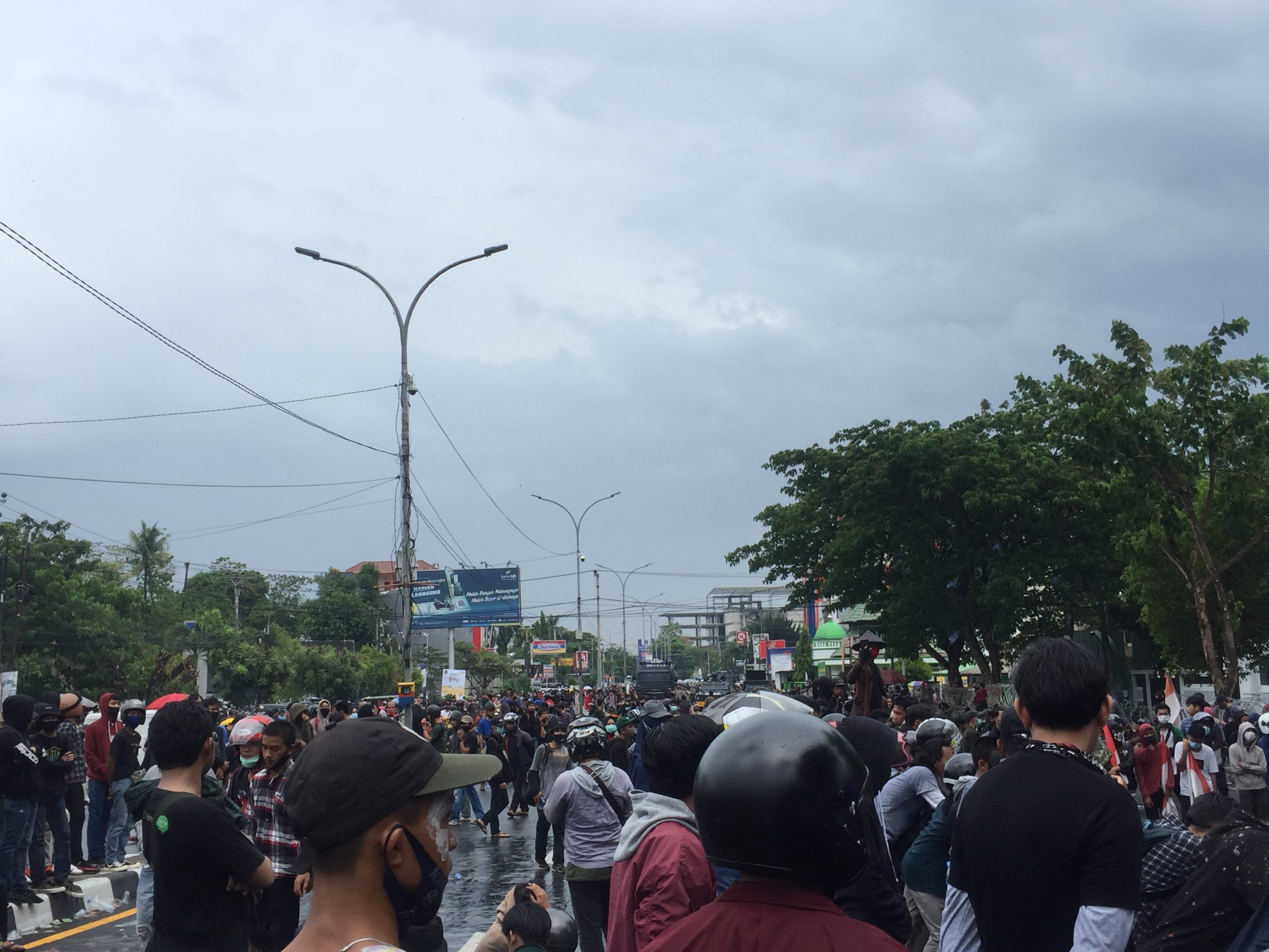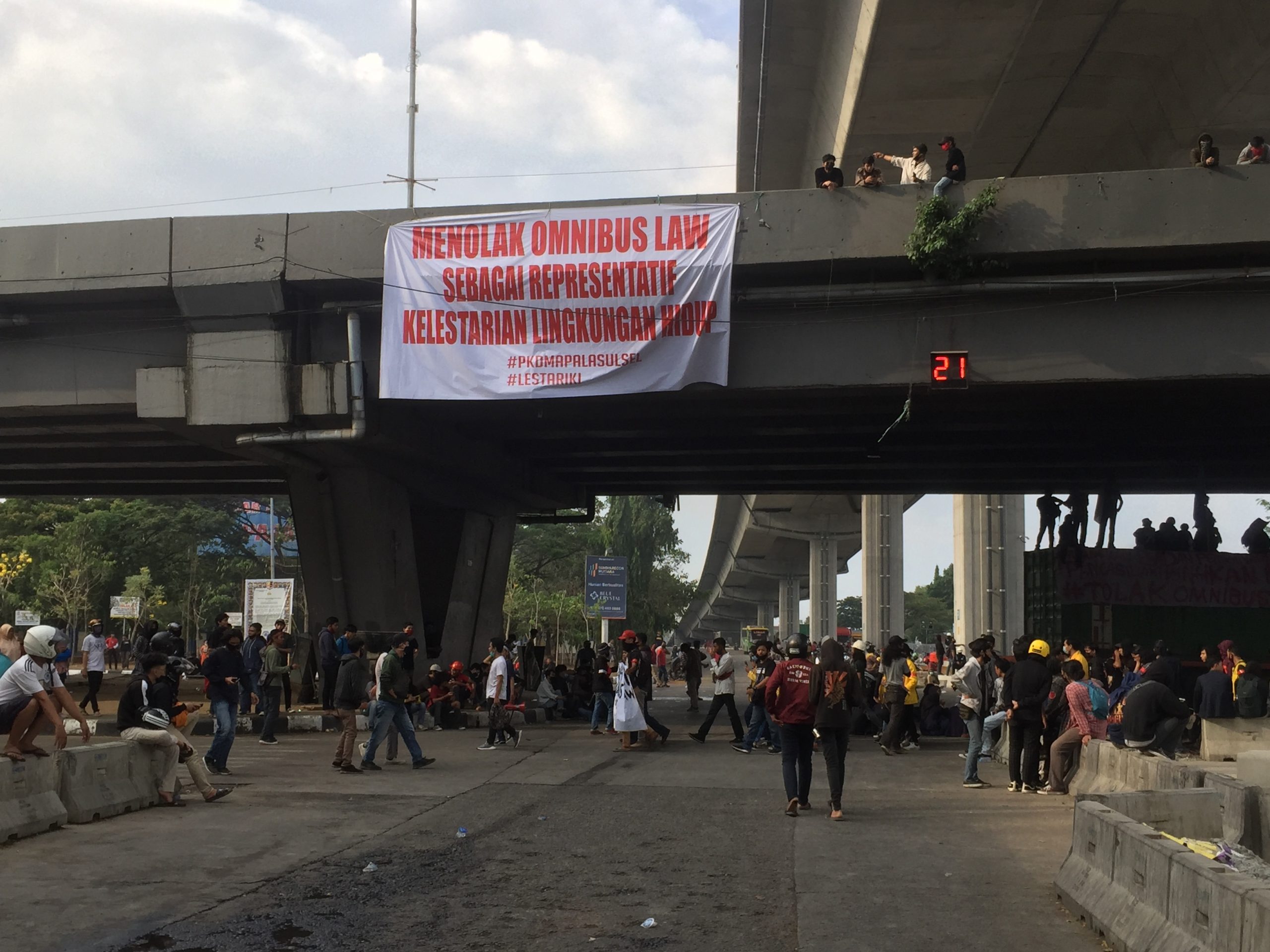 “Kita semua muak melihat ulah Pemerintah dan DPR yang bebal dan menyebalkan karena telah mengesahkan Omnibus Law Cilaka ini. Aturan ini benar2 dibuat hanya untuk mengakomodir kepentingan penguasa dan korporat, merugikan masyarakat,” serunya lantang salah seorang orator aksi dari Universitas Negeri Makassar (UNM).
