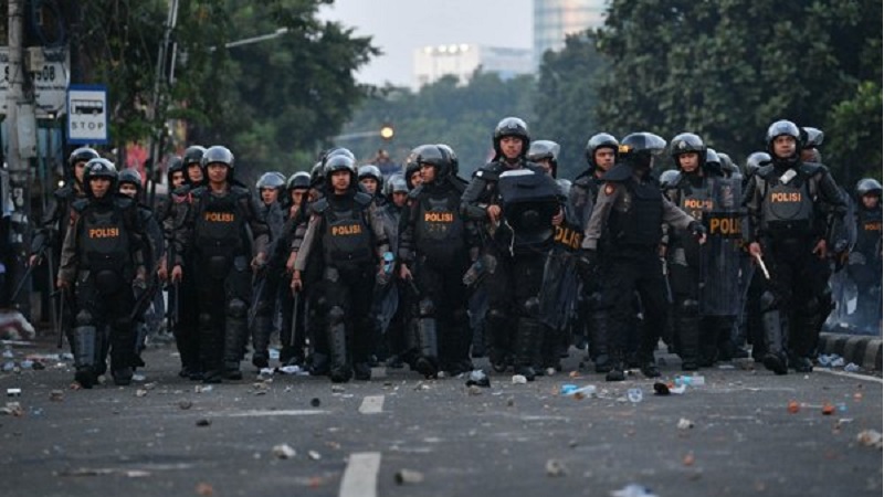 Untuk mengantisipasi potensi kerawanan, petugas keamanan diterjunkan dengan dilengkapi alat operasional penanggulangan kerusuhan.