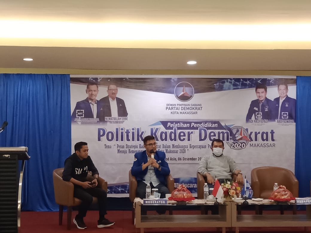 Pelatihan kali ini bertema ‘Peran startegi kader Demokrat dalam membangun kepercayaan menuju kemenangan Pilkada Kota Makassar’. Ada beberapa narasumber hadir sebagai pembicara yakni pengamat politik Luhur Priyanto, Ketua DPC Demokrat Makassar Adi Rasyid Ali, dan Zulkarnain Paturuni, Pengurus DPD Demokrat Sulsel.