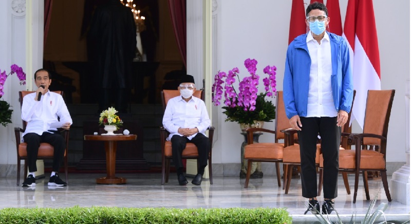 Jokowi pun mengumumkan, Sandiaga Uno menjadi Menteri Pariwisata dan Ekonomi Kreatif menggantikan Wishnutama Kusubandio. Muhammad Lutfi ditunjuk menjadi Menteri Perdagangan yang menggantikan Agus Suparmanto; dan Budi Gunadi menjadi Menteri Kesehatan yang baru menggantikan Terawan Agus Putranto.