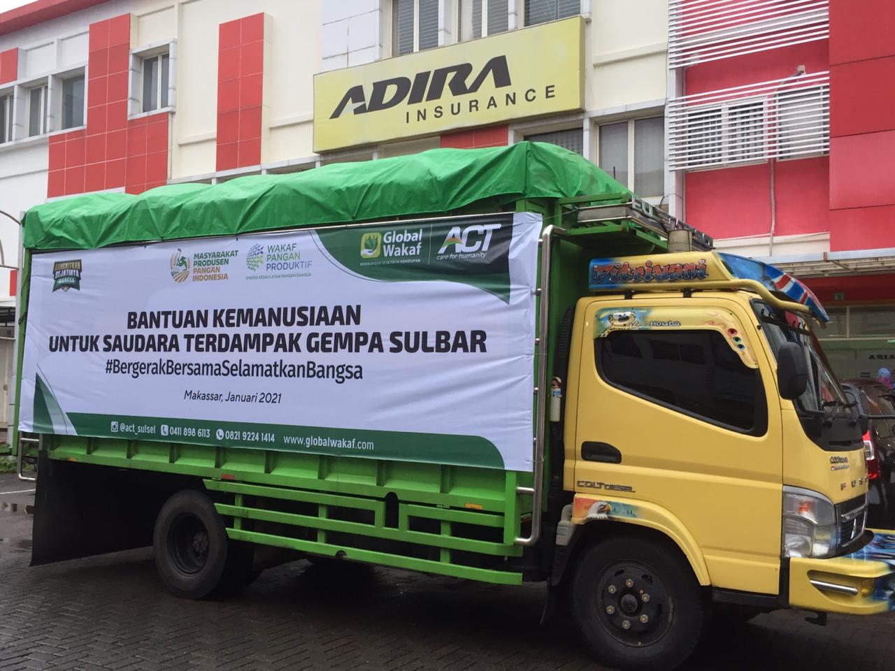 INFOSULSEL.COM, MAKASSAR – Lembaga Kemanusiaan Aksi Cepat Tanggap (ACT) Sulawesi Selatan melepaskan 10 truk bantuan korban gempa di Kabupaten Majene dan Mamuju Sulawesi Barat.