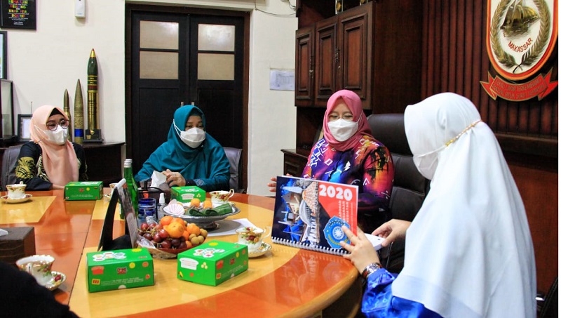 INFOSULSEL.COM, MAKASSAR — Ketua TP PKK Bengkulu, Hj Khairunnisa berkunjung ke kota Makassar dan disambut Ketua TP PKK Makassar, Rossy Timur Wahyuningsih di ruang kerja Walikota Makassar, Jumat (5/2/2021).