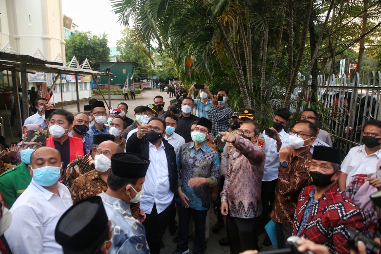 Yaqut yang didampingi Wali Kota Makassar, Moh. Ramadhan “Danny” Pomanto berkeliling melihat lokasi kejadian.