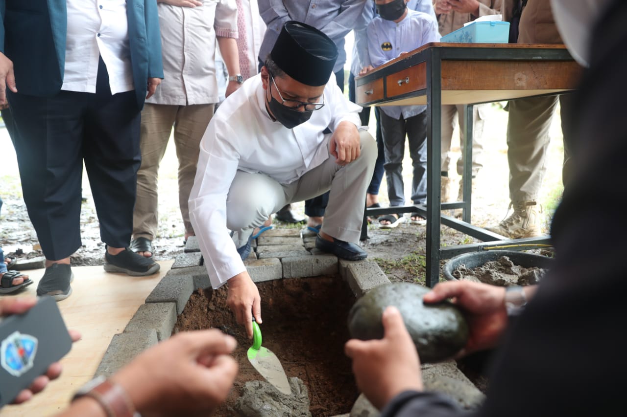Peletakan batu pertama ini dilakukan usai shalat jumat berjamaah di Masjid Anas Bin Malik Stiba.