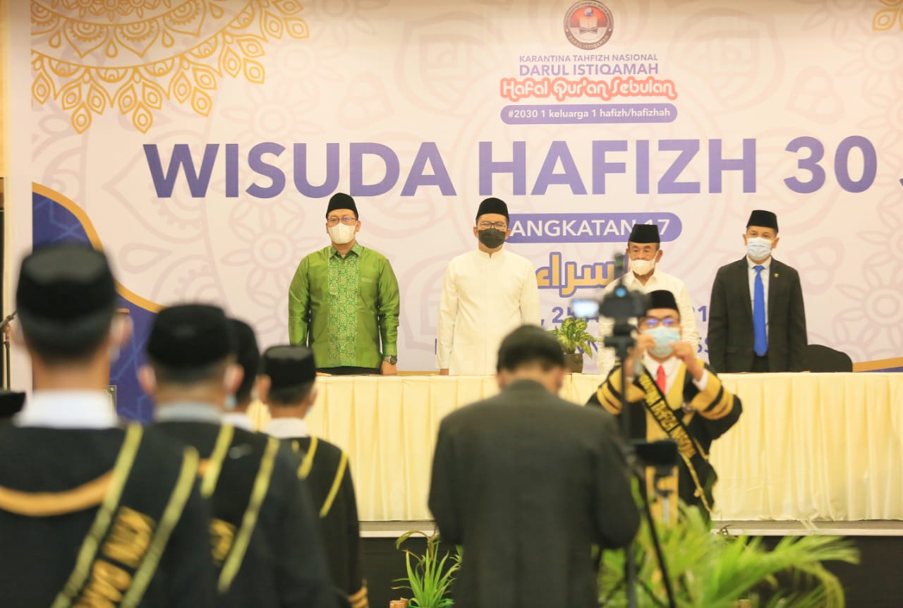INFOSULSEL.COM, MAKASSAR – Tangis Wali Kota Makassar Moh Ramdhan “Danny” Pomanto seketika pecah saat mendengar lantunan ayat suci juga MARS yang di dengungkan oleh para wisudawan/wisudawati penghafal Qur’an 30 juz yang di adakan oleh Karantina Tahfidz Nasional Darul Istiqomah di Hotel Pesonna Makassar,Jalan Mappanyukki, Minggu (25/4/2021).