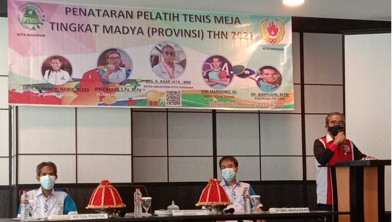 INFOSULSEL.COM, MAKASSAR— Pengurus Persatuan Tenis Meja Seluruh Indonesia (PTMSI) Kota Makassar menyelenggarakan Penataran Pelatih Tenis Meja Tingkat Madya (Provinsi), di Hotel Teraskita, Jl AP Pettarani, Makassar, Jumat- Ahad (11-13/6/2021).