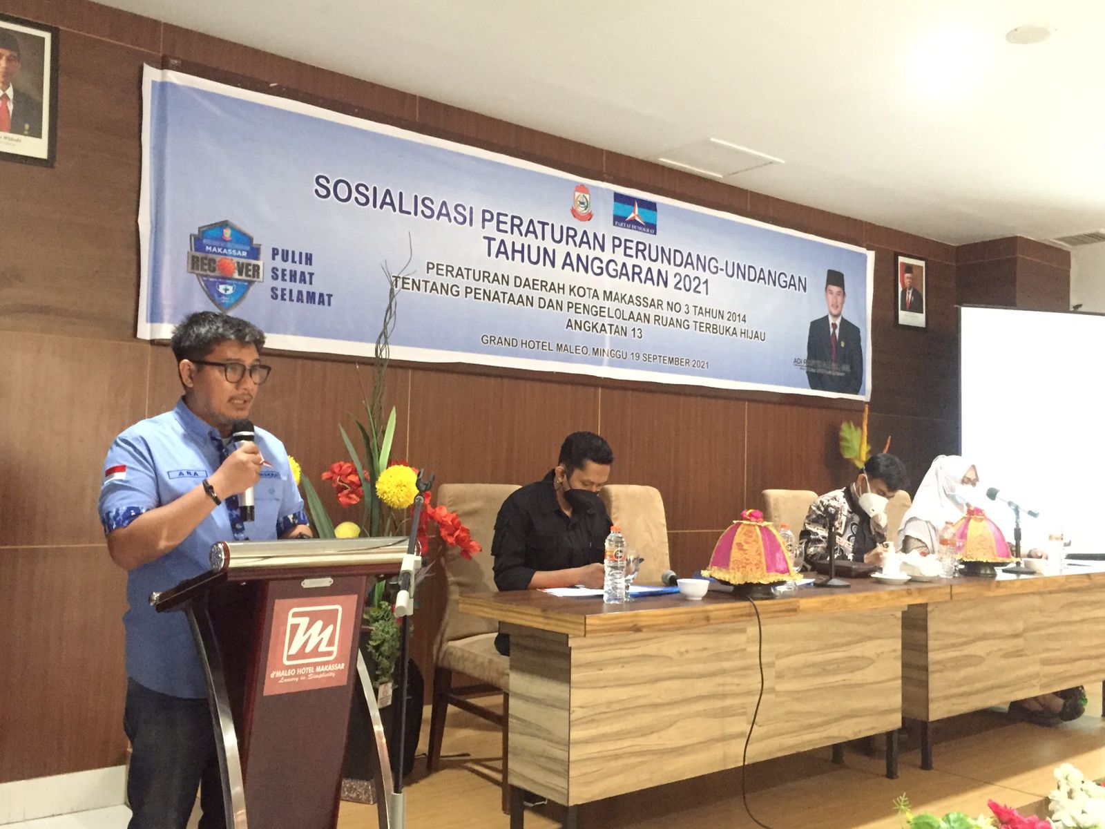 INFOSULSEL.COM, MAKASSAR – Wakil Ketua DPRD Makassar, Adi Rasyid Ali menggelar sosialiasi Peraturan Daerah (Perda) No 3 Tahun 2014 tentang Penataan dan Pengelolaan Ruang Terbuka Hijau (RTH) di Hotel Grand Maleo, jalan Pelita Raya, Kota Makassar, Ahad (19/9/2021).