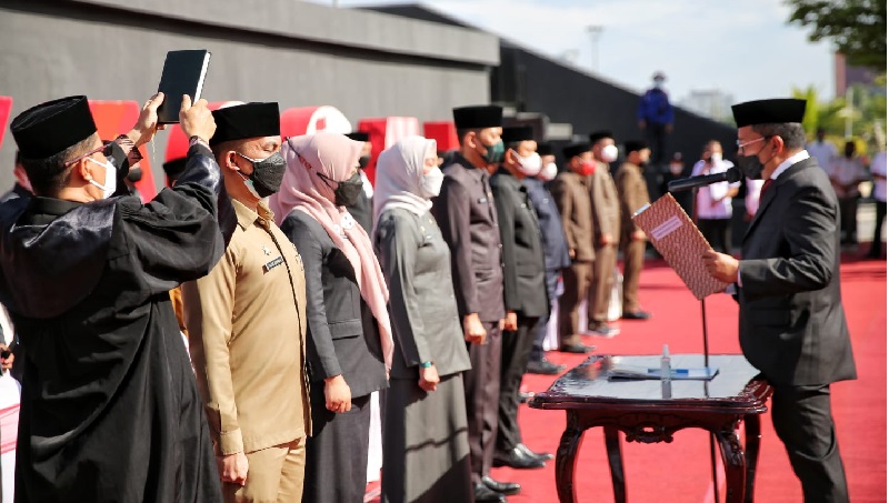 INFOSULSEL.COM, MAKASSAR— Walikota Makassar Moh Ramdhan Pomanto melantik 47 pejabat administrator lingkup Pemerintah Kota Makassar. Pelantikan berlangsung di Anjungan Pantai Losari, Rabu (1/9/2021). Pejabat baru ini dipilih oleh pasangan Danny-Fatma untuk bekerja bersama membangun Makassar.