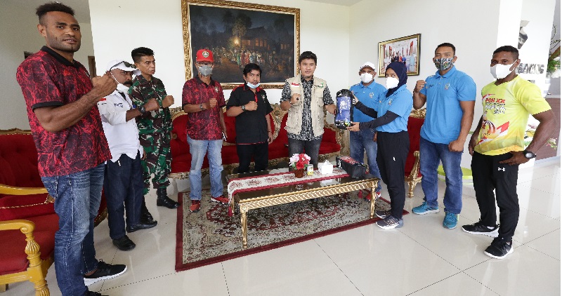 Pada kesempatan tersebut ARA sapaan Wakil Ketua DPRD Kota Makassar juga menyerahkan sejumlah perlengkapan latihan dan jersey tim yang diterima Manajer tim tinju Sulsel, Muh Tawing.