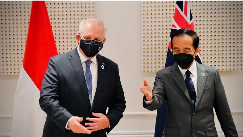 INFOSULSEL.COM, MAKASSAR –— Presiden Joko Widodo mengawali agenda kerjanya di Roma, Italia, pada Sabtu, 30 Oktober 2021 dengan mengadakan pertemuan bilateral bersama Perdana Menteri (PM) Australia, Scott Morrison. Dalam pertemuan yang berlangsung di Hotel Splendide Royal tersebut, kedua pemimpin membahas tiga hal utama, mulai dari vaksinasi hingga isu perubahan iklim.