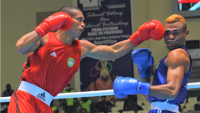 INFOSULSEL.COM, JAYAPURA — Petinju Jawa Barat (Jabar), Michael Muskita masih terlalu tangguh bagi Jhon Yambe. Bertarung dibabak penyisihan kelas 75 kg Cabang Olahraga Tinju PON XX Papua, wakil Sulawesi Selatan (Sulsel) ini harus menyerah di ronde kedua setelah kalah Referee Stops Contest (RSC). Pertarungan kedua petinju ini berlangsung Sabtu (9/10/2021) di GOR Cendrawasih APO, Kota Jayapura.
