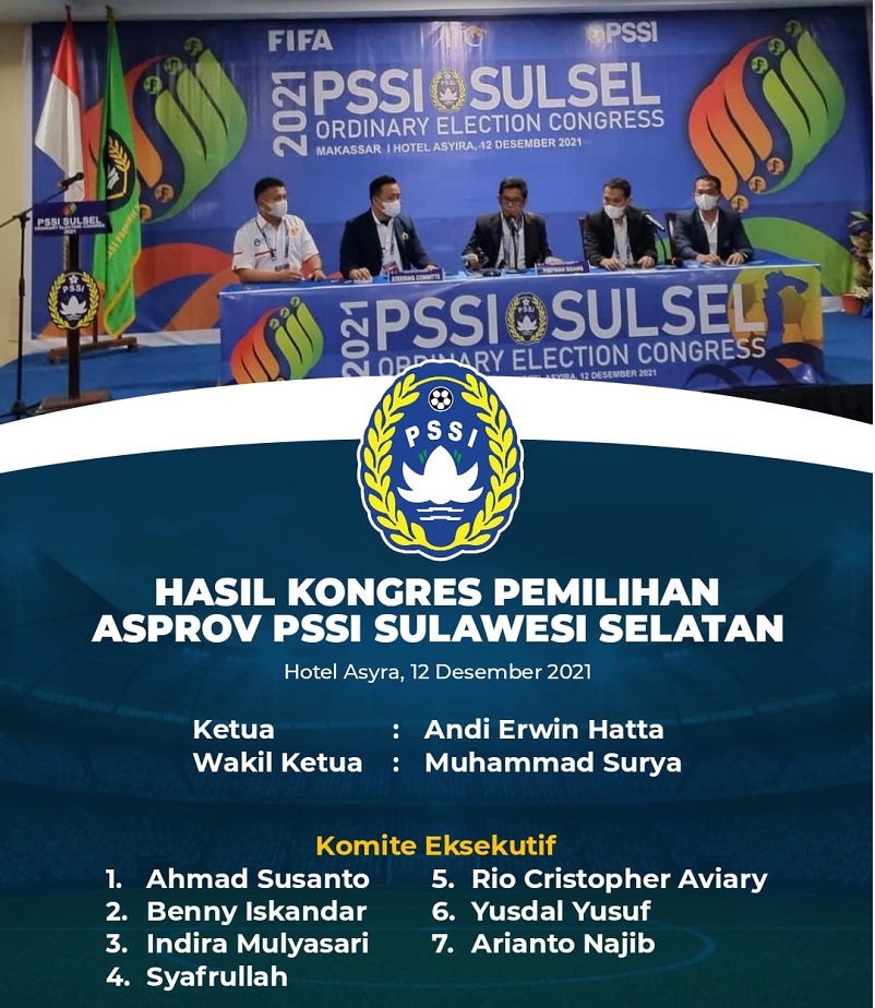 Sebagai pendamping Erwin, peserta kongres juga memilih Muhammad Surya sebagai wakil ketua. Sementara itu di jajaran Exco PSSI Sulsel, terpilih tujuh nama. Mereka merupakan tokoh-tokoh muda yang aktif di berbagai organisasi masyarakat. Menariknya satu di antaranya adalah tokoh perempuan mantan Calon Wakil Walikota Makassar, Indira Mulyasari Paramastuti. Nama lainnya yakni Ahmad Susanto, Benny Iskandar, Syafrullah, Cristopher ‘Rio’ Aviari, Yusdal Yusuf dan Arianto Najib.