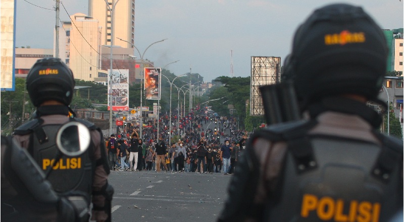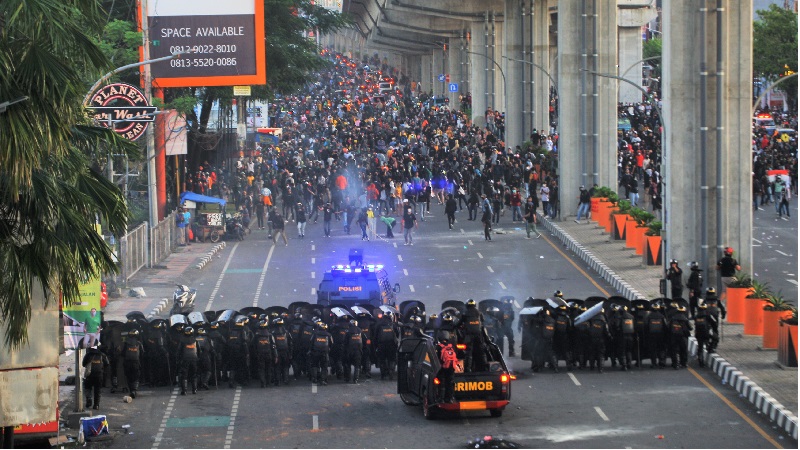 Titik aksi di kawasan flyover dan Jl. AP Pettarani. Sayangnya aksi ini berakhir rusuh. Mereka melempari polisi. Lemparan itu lalu dibalas polisi. Puluhan gas air mata berkaliber 44mm terlontar dari senjata jenis verney carron. Hal ini dilakukan untuk mengamankan kondisi. Sekaligus sebagai peringatan atas serangan batu dan bom molotov yang dilemparkan kepada aparat.