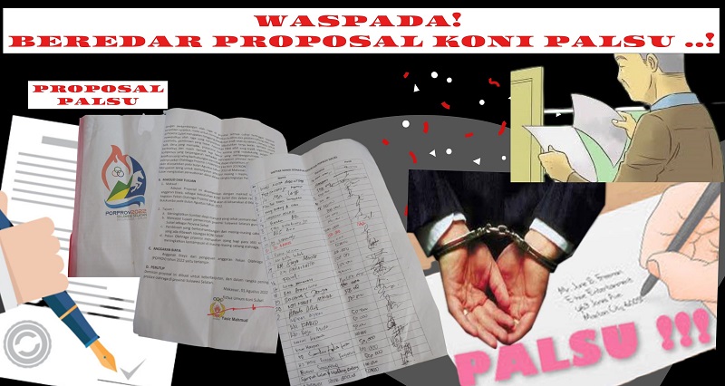 INFOSULSEL.COM, MAKASSAR —Pekan Olaha Raga Propinsi (PORPROV) XVII Sulsel dimanfaatkan sejumlah oknum untuk melakukan kejahatan. Salah satunya dengan mengederkan proposal palsu. Nama Ketua KONI Sulsel Yasir Machmud pun dicatut. Tandatangannya juga dipalsukan. Pelaku diduga tengah keliling Sulsel demi meraup cuan untuk kepentingan pribadi.