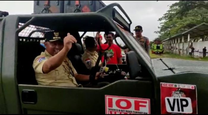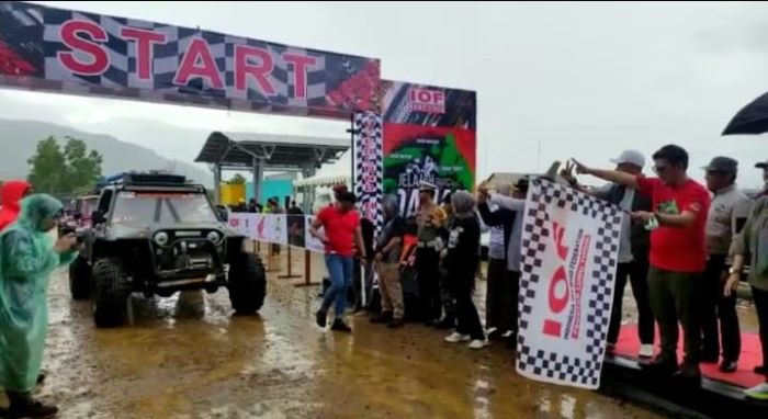 INFOSULSEL.COM, SOROWAKO — Ketua Pengurus Daerah Indonesian Offroad Sulawesi Selatan (Pengda IOF Sulsel) Adi Rasyid Ali bersama Bupati Luwu Timur, Budiman Hakim melepas ratusan offroader peserta Jelajah 3 Danau (J3D) di Sorowako, Luwu Timur (Lutim), Jumat (5/5/2023).