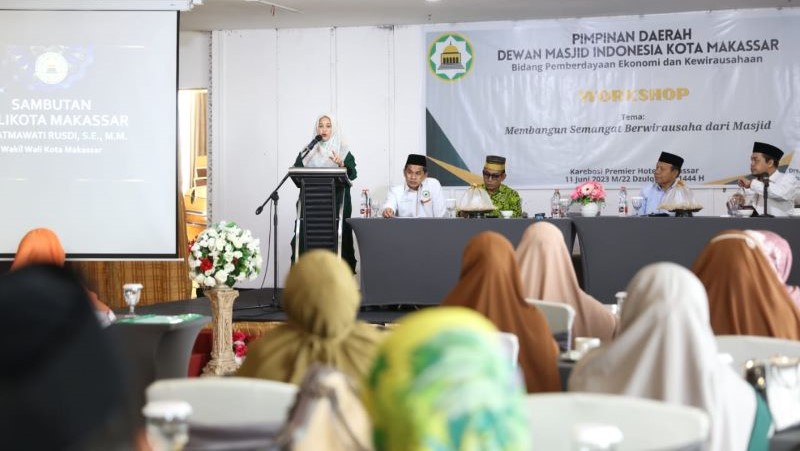 INFOSULSEL.COM, MAKASSAR –– Dewan Masjid Indonesia (DMI) Kota Makassar menggelar workshop pengembangan kewirausahaan di Hotel Karebosi Premier Makassar, Minggu (11/6/2023) yang dibuka Wakil Wali Kota Makassar, Fatmawati Rusdi. Kegiatan ini mengangkat tema ‘Membangun Semangat Wirausaha dari Masjid’.