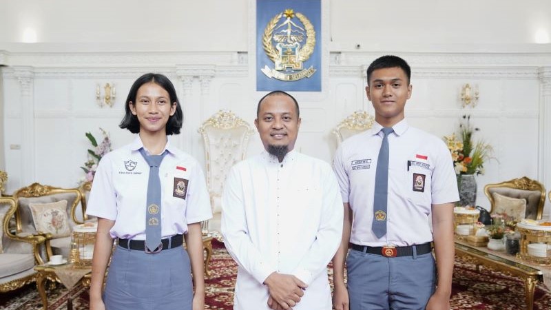 INFOSULSEL.COM, MAKASSAR | Gubernur Sulawesi Selatan, Andi Sudirman Sulaiman menerima dua pelajar terpilih menjadi calon Pasukan Pengibar Bendera Pusaka (Paskibraka) mewakili Provinsi Sulsel tingkat nasional di Rujab Gubernur, Jumat, 14 Juli 2023.