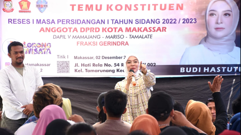 INFOSULSEL.COM, MAKASSAR | Anggota DPRD Kota Makassar, Budi Hastuti melakukan kunjungan ke daerah pemilihannya. Kali ini yang disasar kecamatan Mariso. Kundapil ini berlangsung di sebuah Cafe di Jalan KS Tubun, Kampung Buyang, Kecamatan Mariso, Sabtu (30/9/2023).