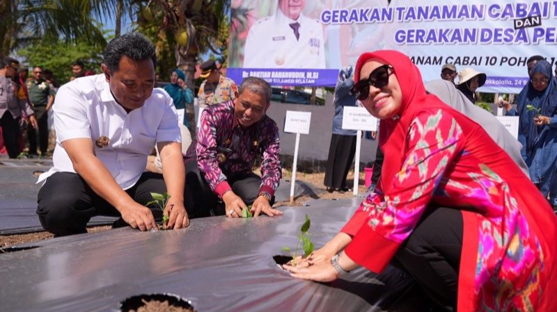 INFOSULSEL.COM, MAKASSAR | Pj Ketua Tim Penggerak PKK Sulsel, Sofha Marwah Bahtiar memulai Gerakan Tanam Cabai 10 pohon tiap ASN dan Gerakan Desa Peduli Inflasi (tanam cabai 10 pohon tiap rumah tangga). Gerakan ini dipusatkan di Kelurahan Peneki, Kecamatan Takkalalla, Kabupaten Wajo, Minggu, 24 September 2023.