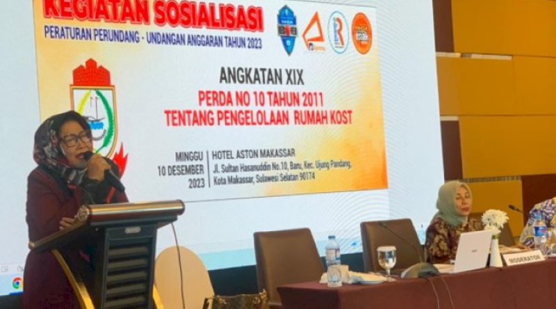 Demikian disampaikannya Apiaty saat sosialisasi penyebarluasan Peraturan Daerah (Perda) Nomor 10 Tahun 2011 tentang Pengelolaan Rumah Kost di salah satu hotel di Jl Sultan Hasanuddin, Minggu (10/12/2023).