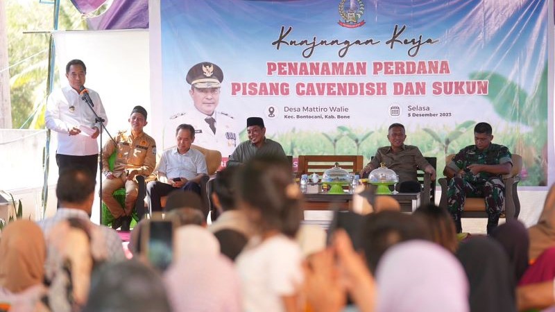 INFOSULSEL.COM, MAKASSAR | Penjabat Gubernur Sulsel, Bahtiar Baharuddin, mengajak masyarakat Desa Mattiro Walie, Kecamatan Bontocani, Kabupaten Bone, meningkatkan kesejahteraannya melalui program budidaya penanaman pisang cavendish, sukun, dan nangka madu.