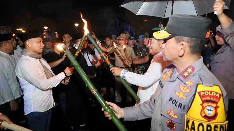 “Ada yang memakai obor sembari takbir dan menabuhkan gendangnya. Ada juga yang atraksi menyemburkan api diiringi shalawat. Ini kita ciptakan seperti di desa-desa suasananya,” ungkapnya.