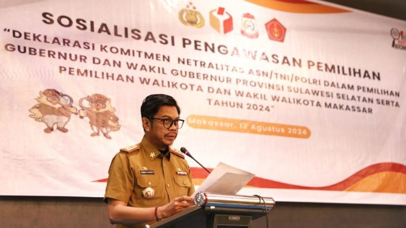 Pada kegiatan sosialisasi pengawasan pemilihan terkait deklarasi komitmen netralitas ASN/TNI/POLRI dalam pemilihan Gubernur Sulawesi Selatan serta pemilihan Wali Kota dan Wakil Wali Kota Makassar 2024, yang digelar oleh Bawaslu Makassar di Horison Ultima, Senin (12/08/2024).