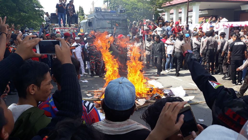 Protes Putusan PT TUN, Massa Bawa Keranda Mayat